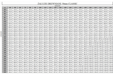 1. Żaluzję drewnianą o szerokości lameli 50 mm z pokrętłem sterującym i drabinką sznurkową lub taśmową (zależy od wyboru) w kolorze żaluzji
