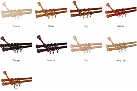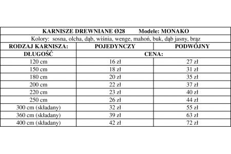 Zamawiam karnisz drewniany POJEDYNCZY model MONAKO o długości 360 cm kolor OLCHA - 2 szt