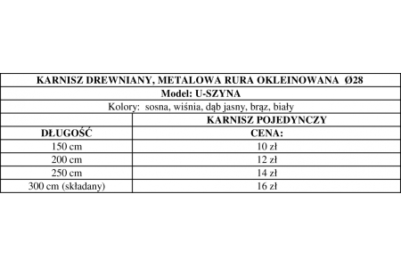 Chcąc kupić karnisz o długości 150 cm wybieram cenę z tabeli i dodaję do koszyka 10 jednostek =10 złotych.