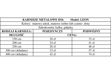 Chcąc kupić karnisz pojedynczy o długości 200 cm wybieram cenę z tabeli i dodaję do koszyka 24 jednostki.
