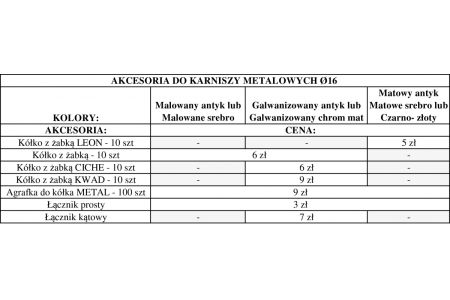 Do wyboru akcesoria do karniszy metalowych FI16.